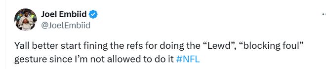 这笔罚款对恩比德而言微不足道——他本赛季凭借顶薪合同,薪资高达5522万美元。本赛季至今,这位7届全明星球员出战4场,场均登场22.3分钟,能得到17.3分、5.3个篮板、3.5次助攻和1次盖帽,投篮命中率、三分命中率、罚球命中率分别为46%、38.9%和80%。根据联盟官方伤病报告,31岁的恩比德将因左膝伤病管理,缺席今日对阵篮网的比赛。对阵篮网前,76人的战绩为4胜1负。恩比德对这笔罚款并不认同,他在社媒上回应道:“既然我这么做不行,那你们最好也开始罚裁判——他们比手势判‘阻挡犯规’,这也够‘不雅’的。”